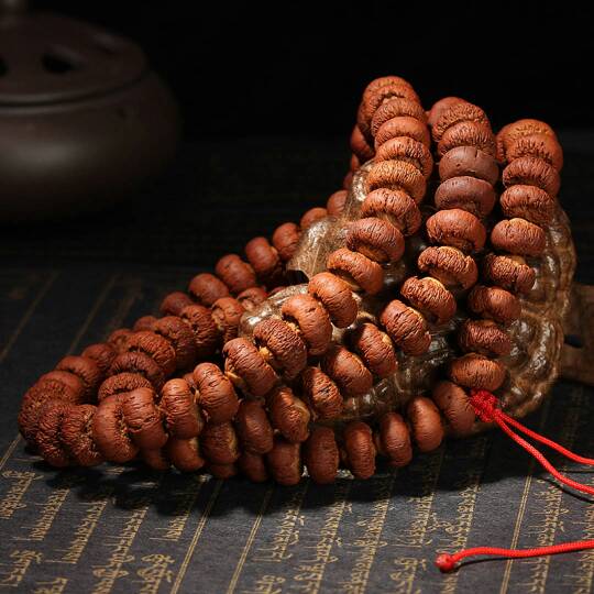 那么莲花菩提子怎么盘呢?今天就来和大家分享一些慕容阁里面有关于莲花菩提的日常盘玩的方法与技巧,首先要说的就是把玩的一个细节全面性,一般来说大家手中的莲花菩提都是做成手串的,这就使得不少人在把玩的时候往往忽略了侧 面,其实在把玩莲花菩提时,应该注意把侧面也盘进去,比如说使用有弹性的线来串莲花菩提,这样在拨动菩提子的时候,就会自然而然地接触到侧面了。