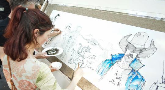 中国龙、水墨画、长城……28日,来自法国、芬兰等7个国家的10位漫画家“手绘”北京,体味京城文化。