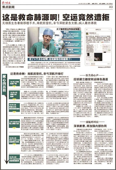 关键词:首例绿色通道肺移植转运 救命肺6小时到无锡