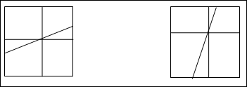 直线从线的方向上可分为水平线、垂直线和斜线。水平线其势为横向扩展,垂直线其势为纵向扩展。斜线的势受方向的影响较大,也最具不确定性,如图以米字格为例,斜线以横线和竖线的交叉点为圆心可有360个角度的变化,与横和竖的关系又可分为倾向于横式、倾向于竖式。处于45度角时则谁也不倾向,中立。斜线倾向于横式时,其动感接近横式,两者构成横向线势群;倾向于竖线时,其动势接近于纵向,两者构成竖向线势群。水平的横与垂直的竖在字中起稳定作用,也起到参照系的作用,因为没有水平和垂直就无所谓有斜。