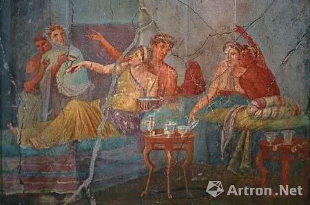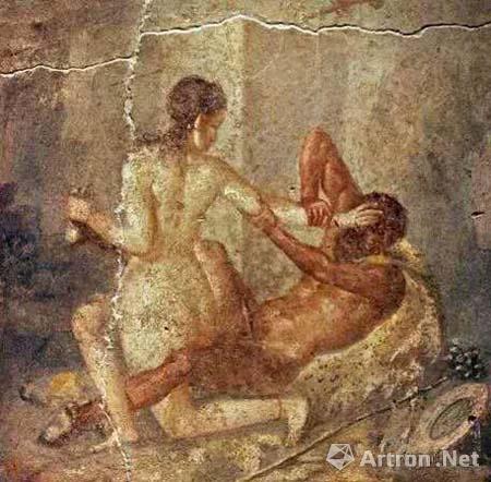那时庞贝城的每家“青楼”里都画着挑逗性的壁画,考古出土的墙上至今仍充斥着各种不堪入目的春画。火山爆发前的庞贝城是个公共浴室的年代,在欲室的更衣室中都装饰着各种爱意壁画,在大厅的壁画里,也常常有裸卧的女人,生殖崇拜以及各种场面,直截了当。总之,在庞贝城出土的很多雕塑以及壁画中都有很多程度不一样的难以入目入笔的“色情”作品。