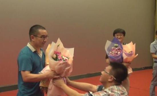 在学生向老师献花的环节中,有几名学生突然跪谢恩师,然后站起来紧紧抱住老师。当事人说,这一切发生得毫无征兆,完全是真情流露,因此才显得弥足珍贵。