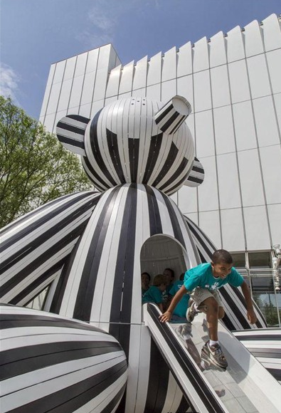 博物馆在吸引小朋友参观的路上花样百出,我们曾经介绍过一家以色列耶路撒冷博物馆,邀请建筑师用木材在广场上搭建了树屋。而在美国亚特兰大高等艺术博物馆(High Museum of Art)的广场上,四个巨大的彩色“娃娃”也成为了小朋友玩乐的新场所。