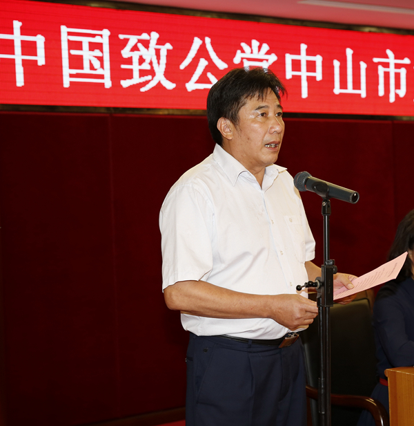 吴竹科代表致公党中山市第六届委员会作《凝心聚力促发展,履职尽责谱新篇》的工作报告,对致公党中山市第六届委员会工作进行了总结回顾。
