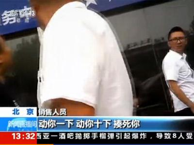 记者在现场看到,杜先生被几名销售人员围在中间,其中一人还对杜先生进行威胁。