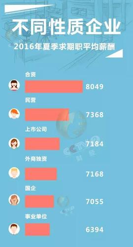 和2016年春季相比,除了上市公司之外,各种性质企业的平均薪酬绝对值均略有提升,其中合资企业的薪酬水平继续保持明显的优势,民营企业的薪酬水平在本季度超过了上市公司。