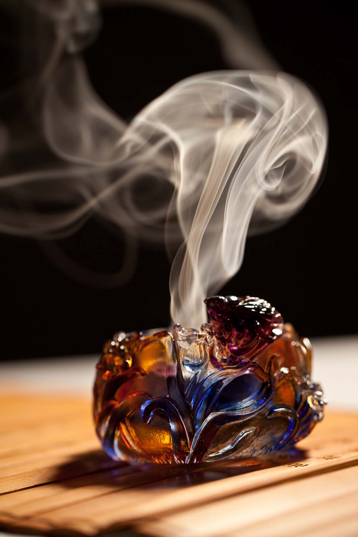 “要是在这里点燃十支香,你会发现每支香的‘性格’都不一样,就和人似的,有的灵动、有的凝重、有的规矩,即使用手在烟中‘剪’一下,它还是不疾不徐地按照原来的轨道走。这不同的‘性格’和做香技术不同有关,非常有讲究。”黄仲斌说。
