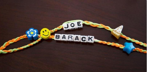 报道称,照片中这两条相当“少女风”的友情手链,上面有奥巴马与拜登的名字。