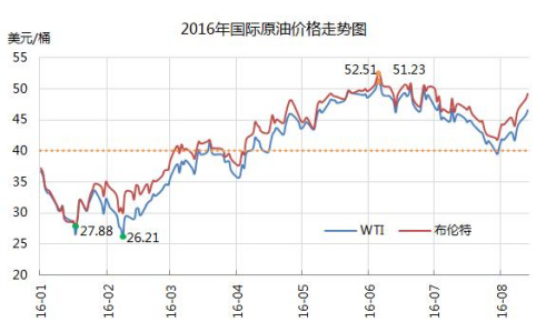在本轮计价周期内,国际油价持续上涨。截至8月16日收盘,美国WTI原油期货上涨至每桶46.58美元,布伦特原油期货上涨至每桶49.23美元,与8月2日收盘价相比,涨幅分别高达17.89%和17.78%。