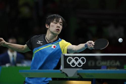 8月17日,日本队选手丹羽孝希在比赛中。 当日,在2016年里约奥运会乒乓球男子团体金牌争夺战中,中国队对阵日本队。新华社记者沈伯韩摄
