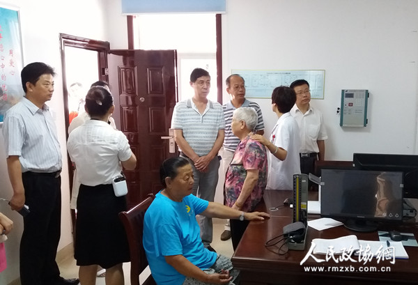 8月11日,安徽省马鞍山市政协组织部分委员深入乡镇街道对养老服务体系建设进行专题调研。调研组先后实地察看了和县天伦托老所、花山区矿内社区老年人日间照料中心和含山县环峰镇花山敬老院,并听取了相关汇报。图为调研组实地视察花山区矿内社区老年人日间照料中心医疗室。 喻洋 苏一帆 摄影报道