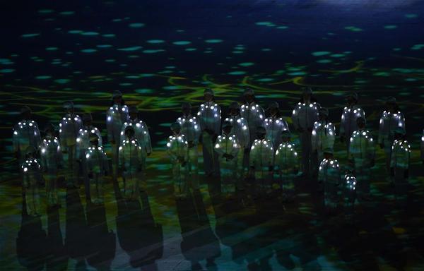 8月21日,第31届夏季奥林匹克运动会闭幕式在巴西里约热内卢马拉卡纳体育场举行。 这是闭幕式上的文艺表演。