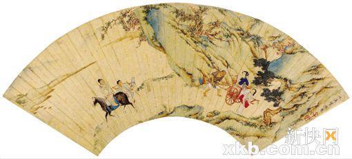 ■仇英 询路图 扇面 设色金笺 雅昌供图