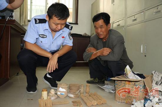 8月29日,他买好车票后准备再卖几件就坐火车回老家,没想到栽在民警手中。民警在其暂住处又找到了42件用报纸包装严密的假文物,这些假文物表面还附着着泥土。