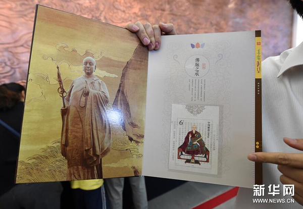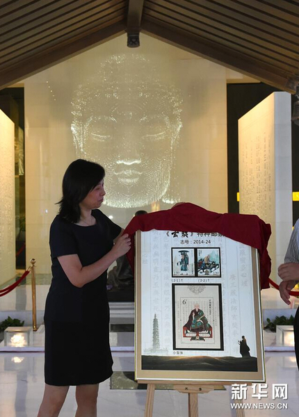 2016年9月4日,中国邮政发行《玄奘》特种邮票1套2枚、小型张1枚。南京首发式在大报恩寺遗址公园举行。 新华社记者孙参摄