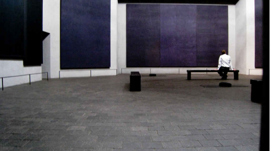 这种创作的不自信还表现在罗斯科极度需要外界的反馈,更准确的说是肯定。譬如罗斯科晚年创作《罗斯科教堂》时,他每隔几天就邀人来他画室,看他已经画下的东西。这些被邀请的人中,包括同行、批评家、收藏家。他观察他们的反应、面部表情,甚至细致到肌肉微妙的牵动。显然,这时艺术家的创作已经不是独自“对一个未知的精神空间的探险”,而成了经过艺术界反馈的一个社会事件。