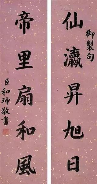 和珅书法,故宫有收藏,其书法融欧、颜、柳于一体,颇具书卷气,可知并非一日之功。
