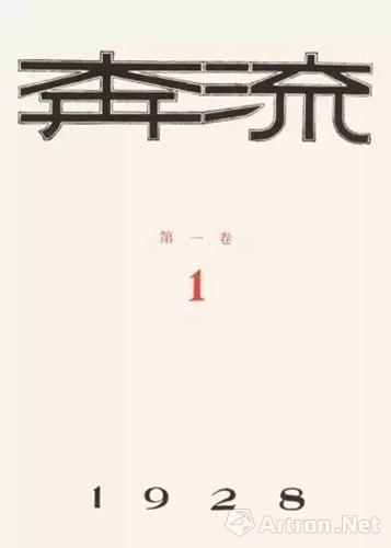 鲁迅的封面设计中,经常会亲自题字,1928年在上海创刊的《奔流》月刊,封面刊名就是他亲自题写,“奔流”二字笔画相连,左右贯穿,通过字体变形设计,装饰效果非常突出。