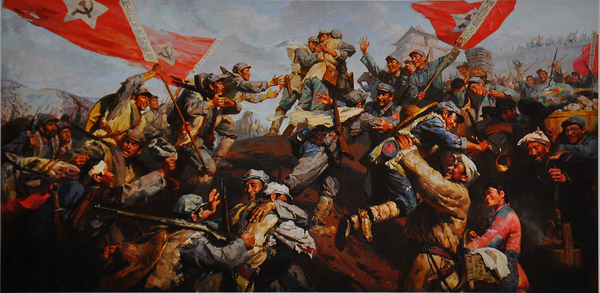《三大主力会师》蔡亮、张自嶷1977年 尺寸:331×166厘米 中国人民革命军事博物馆藏 布上油画