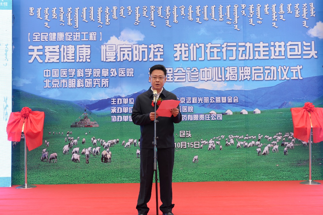 人民政协网包头10月15日电(记者 吴静怡)由人民政协网和北京远程光明公益基金会共同主办的“全民健康促进工程走进包头暨阜外医院、北京市眼科研究所远程会诊中心揭牌启动仪式”,15日在内蒙古包头市举行,为包头市蒙医中医医院捐赠健康筛查车与救护车,并开展医疗培训和义诊。范利、安阿玥、吴海洋等全国政协医卫界委员和医学专家等参加活动。