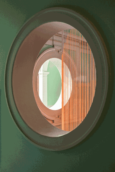今年的伦敦设计周上,伦敦设计工作室 Glithero 和设计师 Panerai 在V&A里展出了一件同样为意大利制表商“沛纳海”创作的时间主题装置《Green Room》。他们从时间的线性流逝中获取灵感,用一连串彩色霓虹线制造出一个“抽象的时钟”横跨V&A的六层楼,人们在每一层观看都会有不一样的效果。