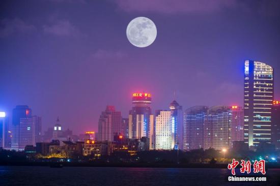超级月亮刷爆朋友圈 市民走上街头用镜头捕捉美景