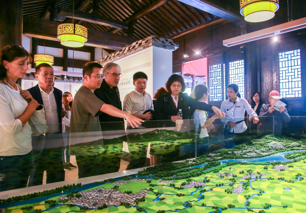 国外艺术家团队在莲都区区委副书记周海忠的陪同下调研写生各站点