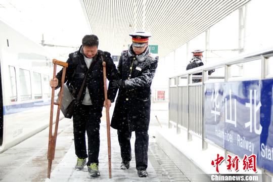 图为铁路工作人员帮助旅客进站。 秦姝 摄