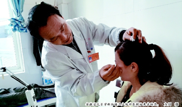 安徽省天长市新街镇卫生院中医师给患者针灸。 九剑 摄
