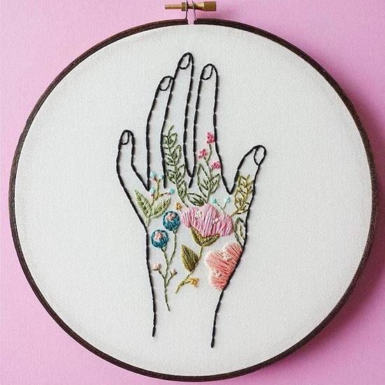 Cinder & Honey的Caitlin Benson让美丽的繁华占领了刺绣箍。她多彩且极简的作品被当做一个完整的作品或是开始DIY的底图。