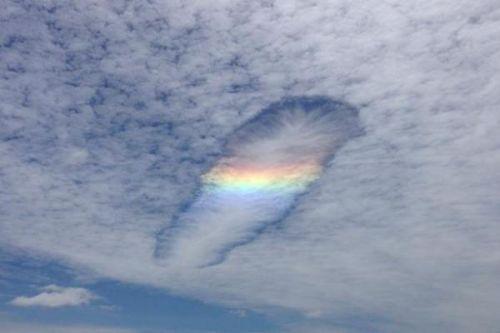 澳大利亚的环境真的没话说,澳大利亚维多利亚省东部的居民周一中午,目睹罕见的云朵奇观,密布的云层中忽然出现一个洞,仿佛是上帝踩了一脚,云内更有一道彩虹。根据网友拍的照片,场面非常的壮观,也非常的漂亮,犹如美丽的大脚镶嵌在天空。