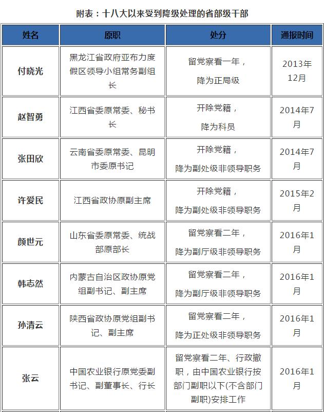 中央从严治党动真格 十八大后至少20名省部级干部被降级