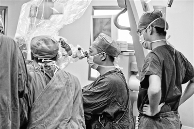 手术的主刀医生邸飞,是北京天坛医院神经外科的一名主任医师,于去年8月接替同事来到这里。“合作前,张家口这边的脑科手术常年维持在个位数,合作第一年,手术就达到了200多台。我来了之后几乎每天一台,这半年已经200台了。”