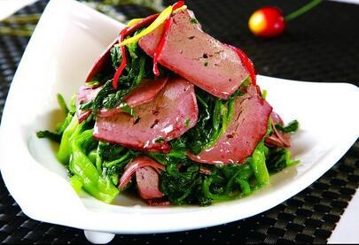 原理:猪肝富含叶酸、维生素B12以及铁等造血原料,菠菜也含有较多的叶酸和铁,同食两种食物,一荤一素,相辅相成。