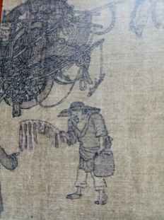 上图官吏幞头隆起,未见角,团领公服,内衬中单。腰系革带,脚着布履。而下图中劳作百姓对领短衫齐膝,脚着草鞋,短裤不及足腕,软带系腰。各色人等,遍布其中,完全是北宋末年型制。