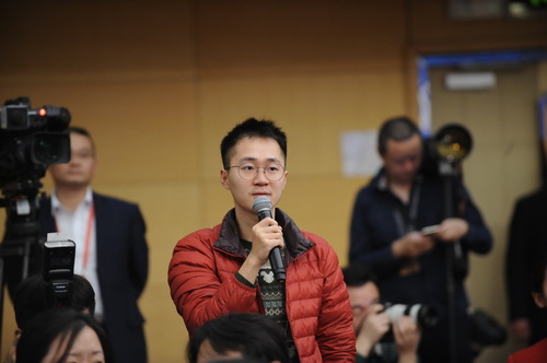 中国报道记者就“金融支持农业供给侧结构性改革”向农业部部长韩长赋现场提问 人民网郝勇 摄