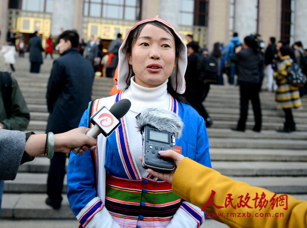 少数民族委员杨方接受记者采访。