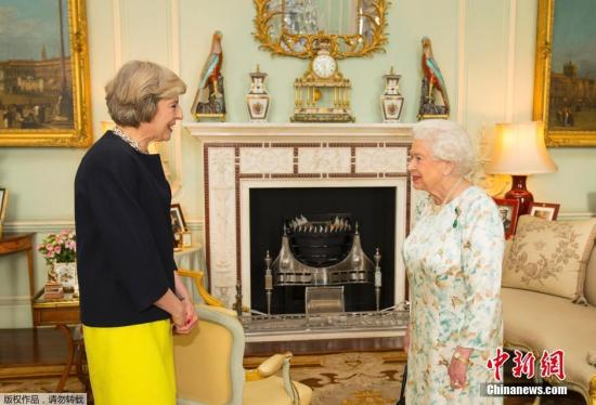 资料图:英国首相特蕾莎·梅(左)与英国女王。