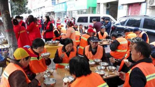 4月3日一大早,十多位志愿者就来到了漯河市建设路与五一路交叉口附近的汇德爱心粥屋帮忙。6点半钟,在附近工作的环卫工陆续前来就餐,志愿者们立即把饭菜盛好,给他们端到桌子上。吃着香喷喷的饭菜,环卫工们脸上笑开了花,漯河市源汇区顺河街办事处的环卫工张大爷告诉记者,以前在湘江路与文化路交叉口处,志愿者张云就开了一家爱心粥屋,大家经常在那儿吃饭,后来换了工作地段,就没有再去,没想到现在张云又和志愿者们新开了一家,又能吃上爱心早餐了。