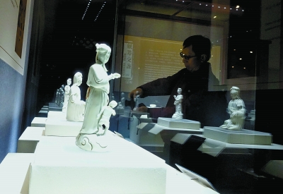 昨天,“冰玉玲珑——明清德化窑白瓷精品展”在颐和园德和园景区扮戏楼展厅亮相,展出69件明清时期的德化窑白瓷代表作品,其中8件为一级文物。 记者 吴镝摄