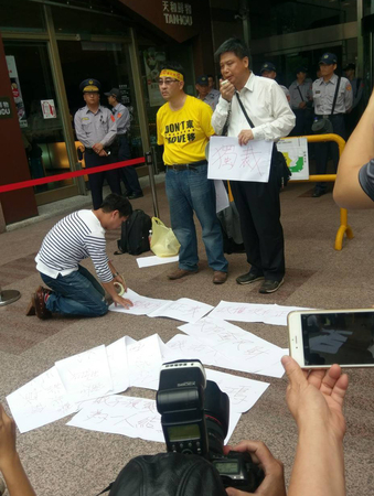岛内政治大学教授徐世荣赴民进党中央党部抗议。(图片来源:台湾《联合报》)