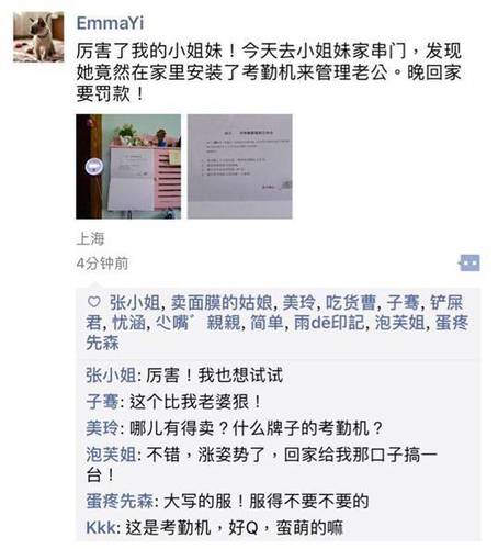 震惊!网曝上海女子在家安装考勤机"管理"老公
