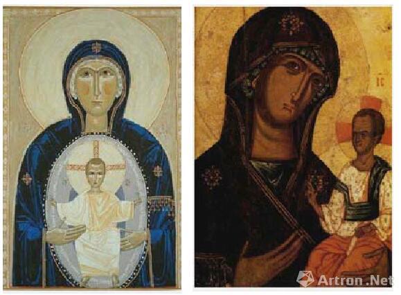 左边:圣母子 12世纪 右边:圣母子14世纪