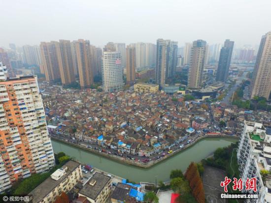 资料图:2016年12月07日,上海,航拍上海最大的棚户区——张桥。蒋一超 摄 图片来源:视觉中国