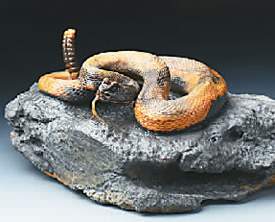 活灵活现的巴林石雕“响尾蛇”