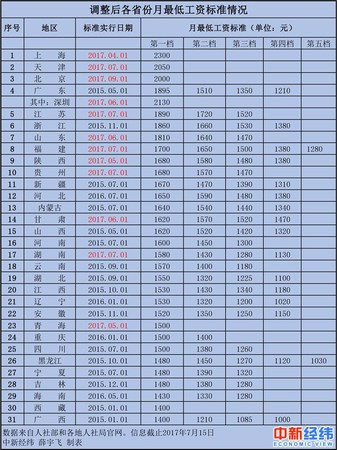 中新经纬客户端7月16日电(薛宇飞) 2017年已经过半,全国多个省市已经上调了今年的最低工资标准。中新经纬客户端(微信号:jwview)统计发现,截止7月15日,上海、天津、江苏、山东等11个省市及深圳上调了最低工资标准,其中,北京将在今年9月调整到位。数据显示,地方政府上调最低工资的步伐有所放慢,涨幅已经出现回落。