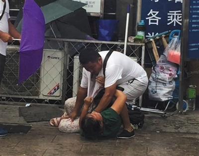 昨天,两名黄牛因为“生意”厮打起来。新京报记者 赵凯迪 摄