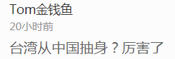 当然,在韩媒这篇报道中,最让网友愤怒的还是文章标题。对于“台湾想从中国抽身”,网友表示,“台湾就是中国的,怎么抽身?”并讽刺,“中国都想从中国抽身”。