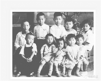 照片上是一群孩子,围坐在一个圆形的台面上,两边和后面还加了几把椅子。我母亲就坐在最左边,她那年11岁。其他的还有我伯外公家、大姑外婆的几个长辈。