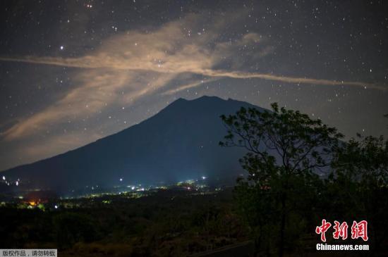 资料图:夜空下的印尼阿贡火山